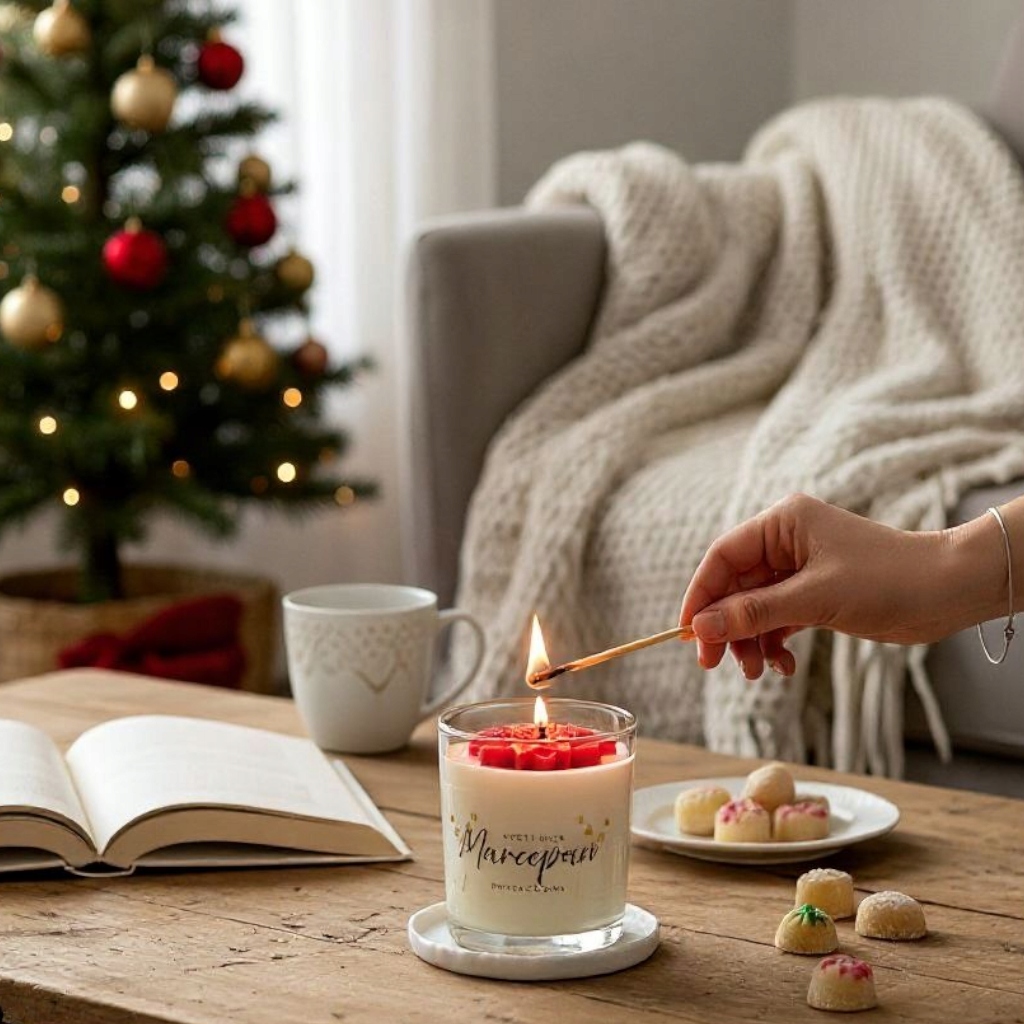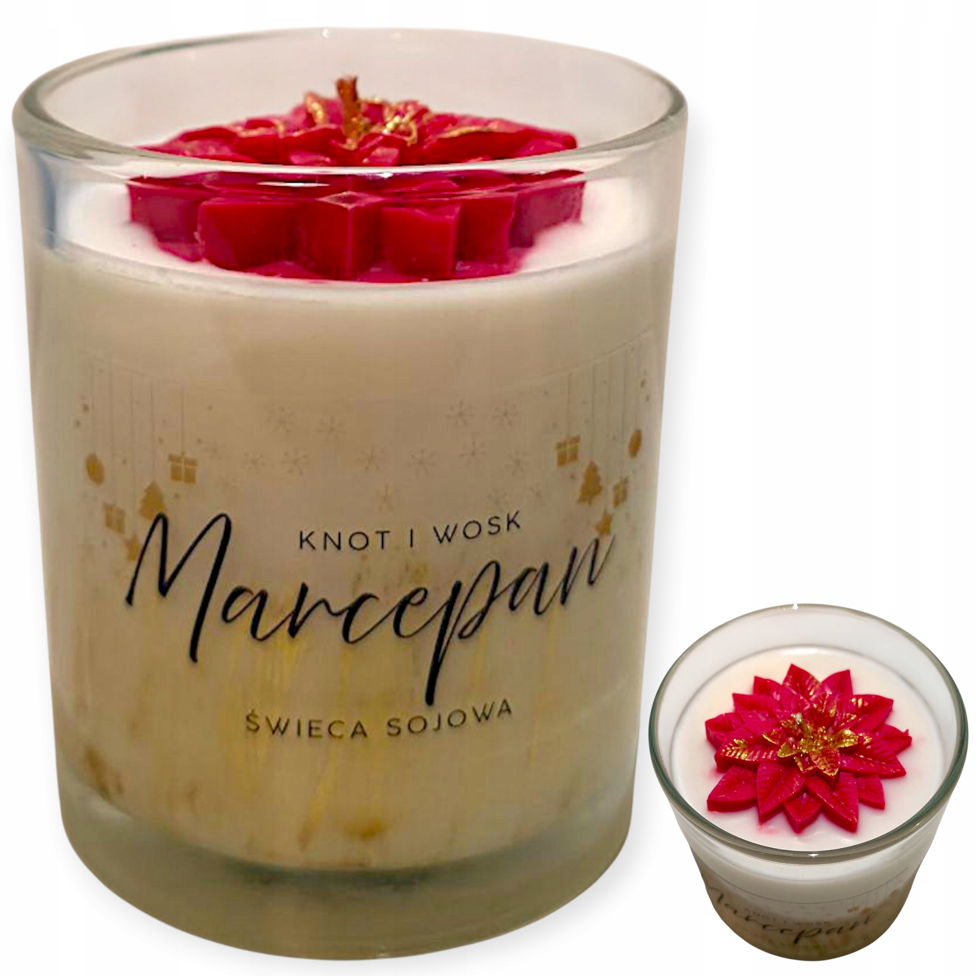 ZAPACH ŚWIĄTECZNY MARCEPAN ręcznie wylana i zdobiona świeca sojowa prezent